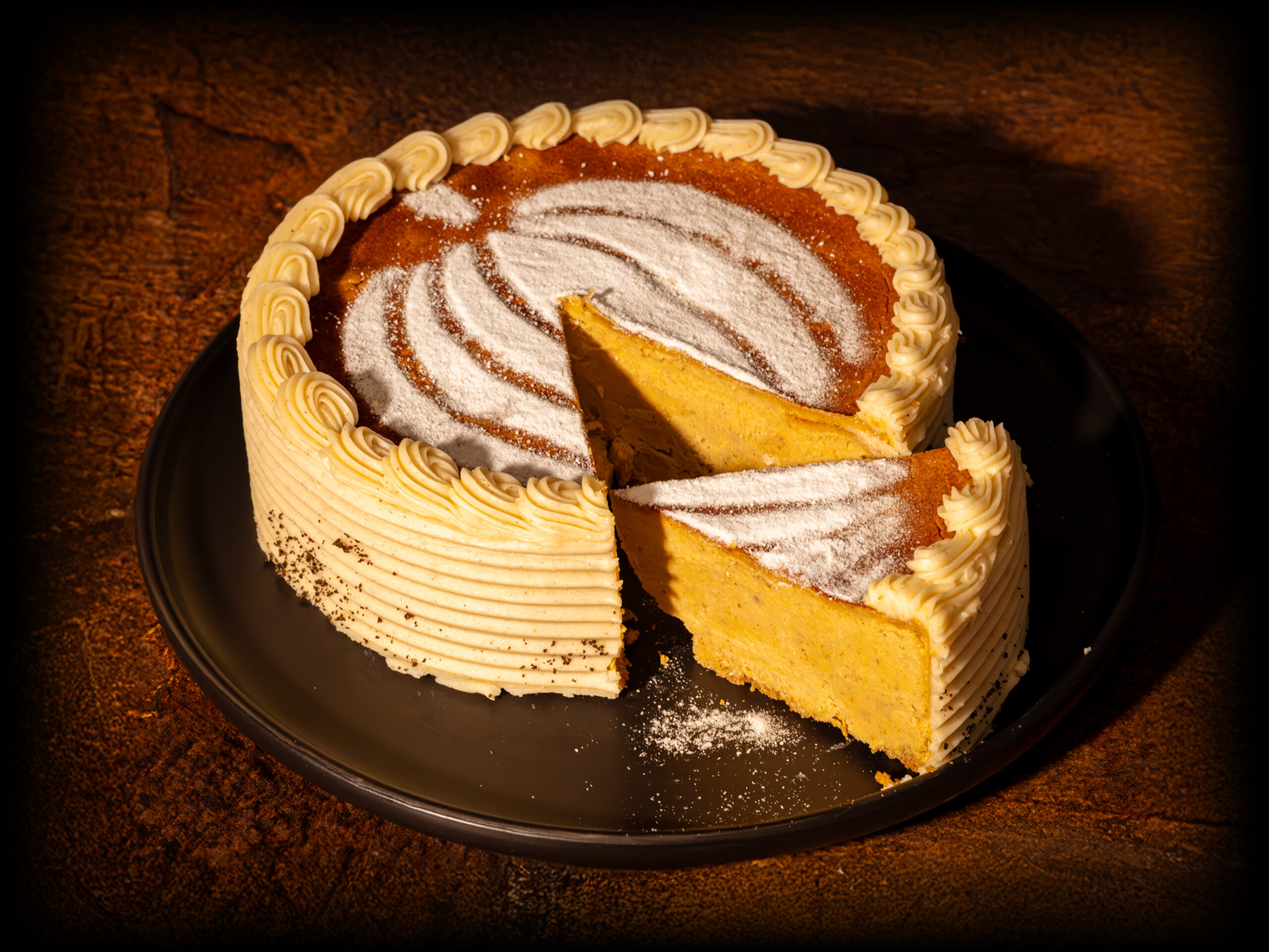 Our Pumpkin Pie is baked with creamy pumpkin filling and warm seasonal spices, nestled in a flaky golden crust. A timeless favorite for gatherings, dinners, and celebrations.