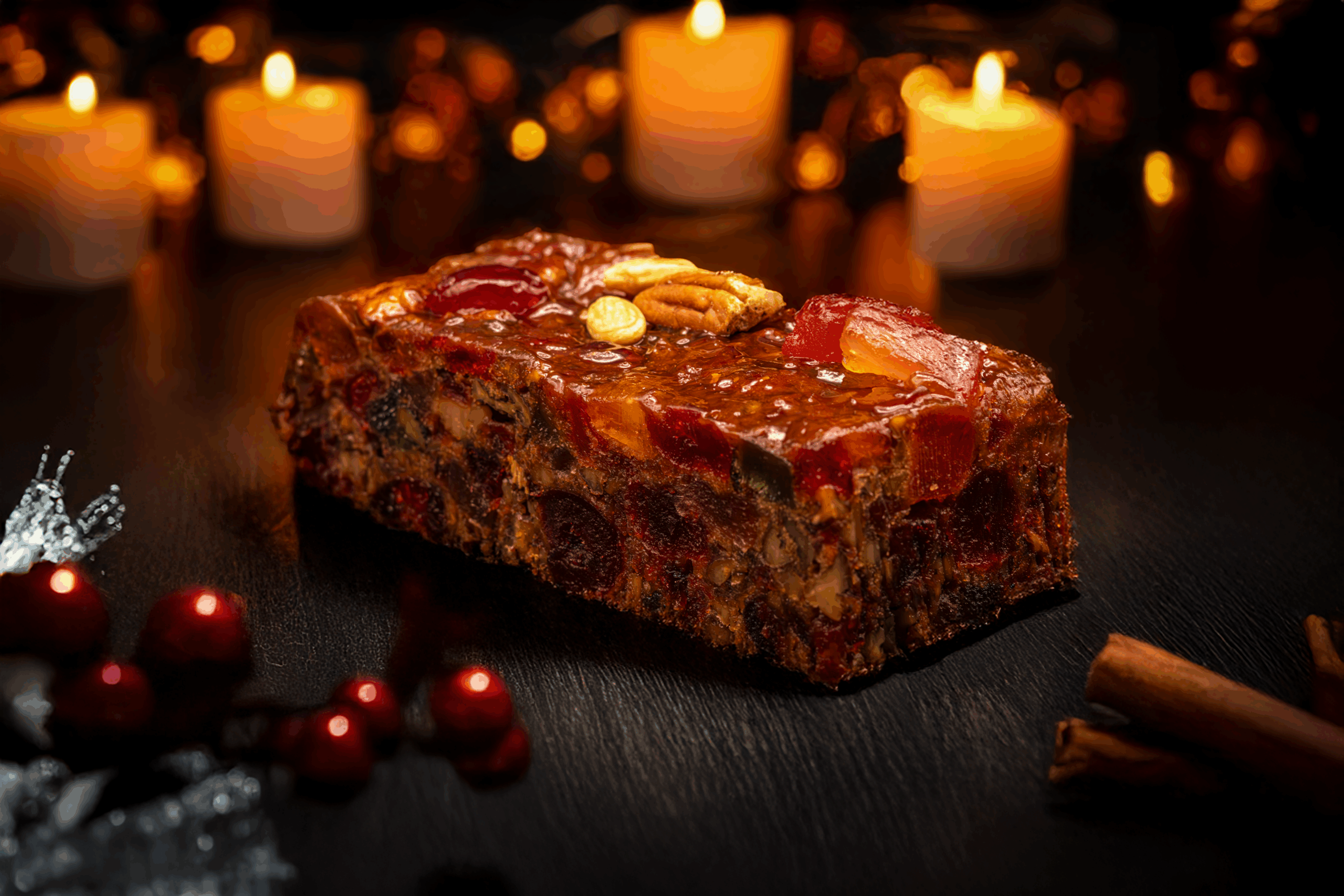 A rich holiday fruitcake filled with candied fruit, pecans, and almonds β a timeless Christmas tradition.
